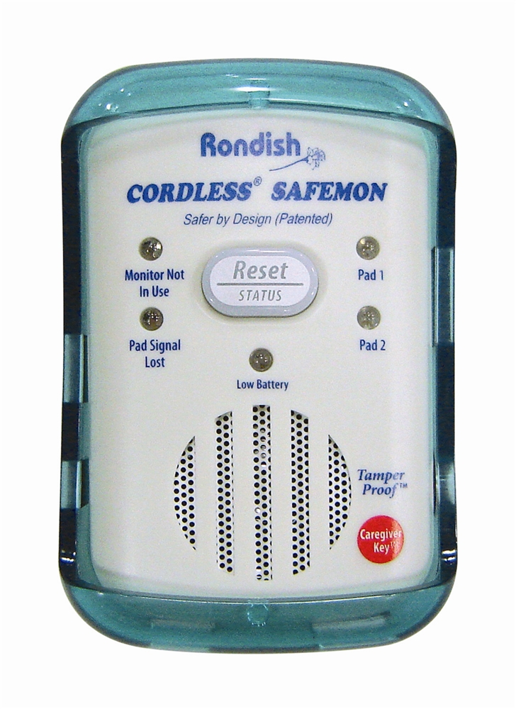 Moniteur sans fil pouvant être utilisé simultanément avec 2 bandes au lit ou coussin au fauteuil. Peut être réinitialiser à l'aide d'une clé magnétique.